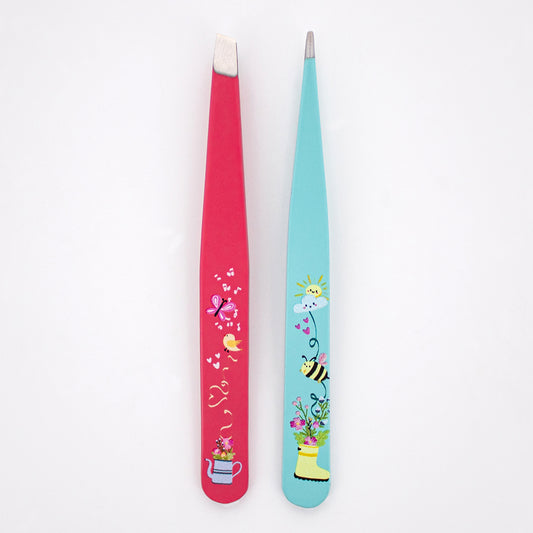 2 PC TWEEZER SET WITH DESIGN (RASPBERRY & ROBIN'S EGG BLUE)