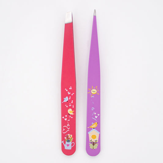 2 PC TWEEZER SET WITH DESIGN (RASPBERRY & ORCHID)